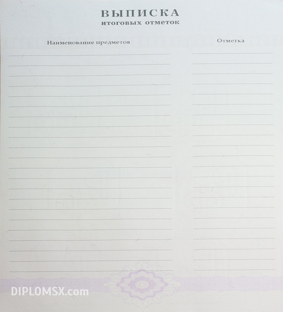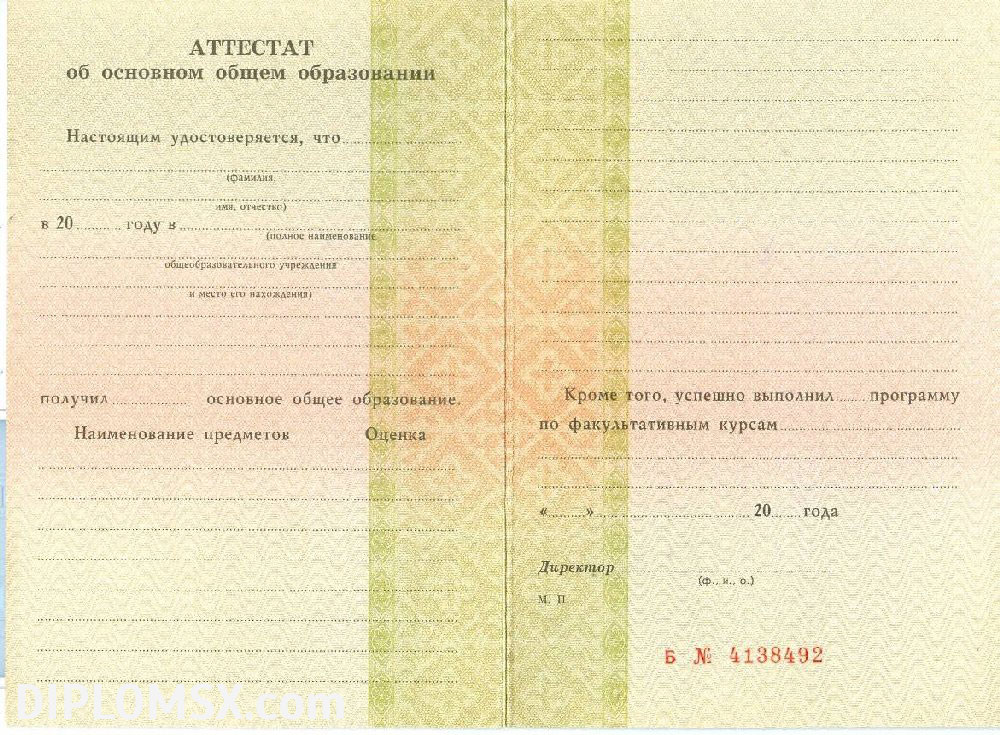 Аттестат о среднем образовании за 9 класс